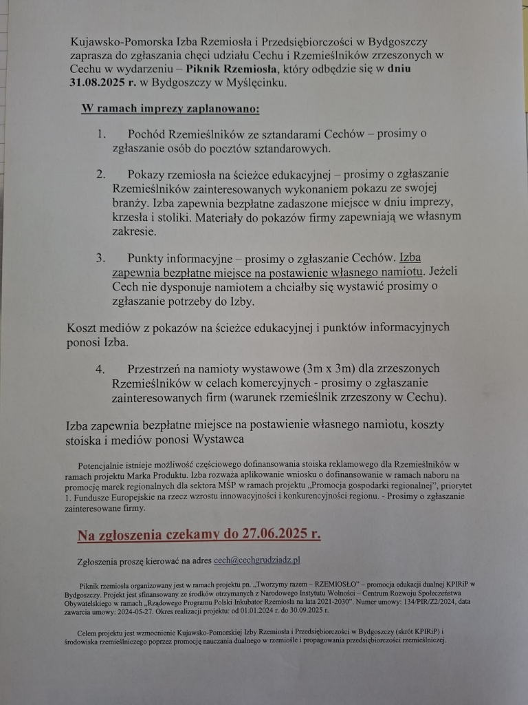 W dniu 18.06.2025r w Cechu Rzemiosł Różnych i Przedsiębiorczości odbyło się wręczenie nagród w ramach Rządowego projektu Polski Inkubator Rzemiosła na lata 2021-2023 pt: „Rzemiosło 4.0: Wspieranie kształcenia dualnego w sferze cyfrowej „.
