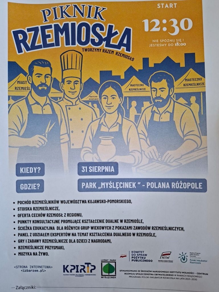 Dnia 30 października 2024r. w Auli Cechu Rzemiosł Różnych i Przedsiębiorczości w Grudziądzu odbył się finał konkursu literackiego ” Jak wyobrażasz sobie wybrany zawód rzemieślniczy”. W konkursie wzięli udział uczniowie Szkół Podstawowych i Branżowych I Stopnia z Grudziądza i jego okolic. Laureatom serdecznie gratulujemy.